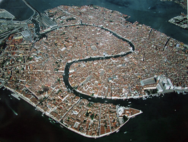 Erigée sur une multitude d’îles marécageuses, la Cité des Doges couvre quelques 8 kilomètres carrés ; Venise, c’est aussi 1500 ans d’histoire ; 6 quartiers administratifs eux-mêmes éclatés en 5 subdivisions et ne comptant en 2004, que 72000 habitants. Très proches, comme "la Giudecca" ou plus éloignées comme "Torcello", de nombreuses îles sont intégrées à Venise (San Lazzaro, San Giorgio, Murano, Sant'Erasmo, San Francesco, Burano) ainsi que l'île de l'extrème littoral nommée "Le Lido" (Hôtels touristiques et plages de sable fin). Voir la vue photographiée par satellite dans la page d'accueil consacrée à venise.